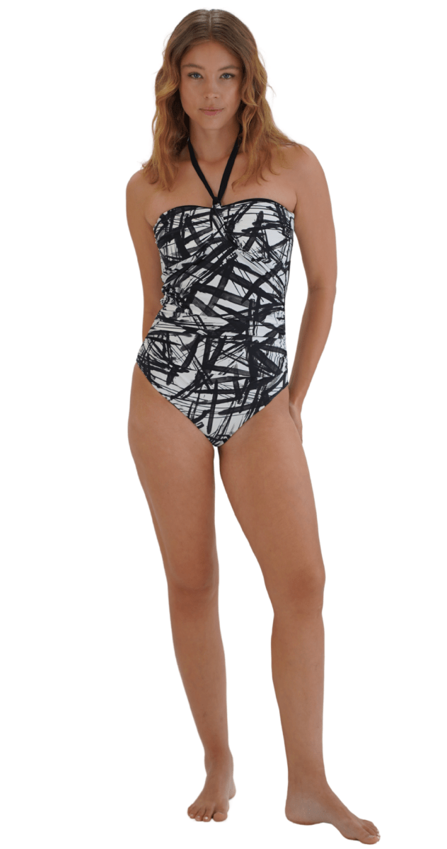 يتميز هذا المايوه بتصميم ياقة باندو ، مما يُبرز جمال الصدر ويُحدد الخصر بلطف. كما يتيح لكِ تصميمه القابل للعكس تغيير إطلالتكِ بسهولة، ليمنحكِ مظهرين مختلفين في قطعة واحدة أنيقة.