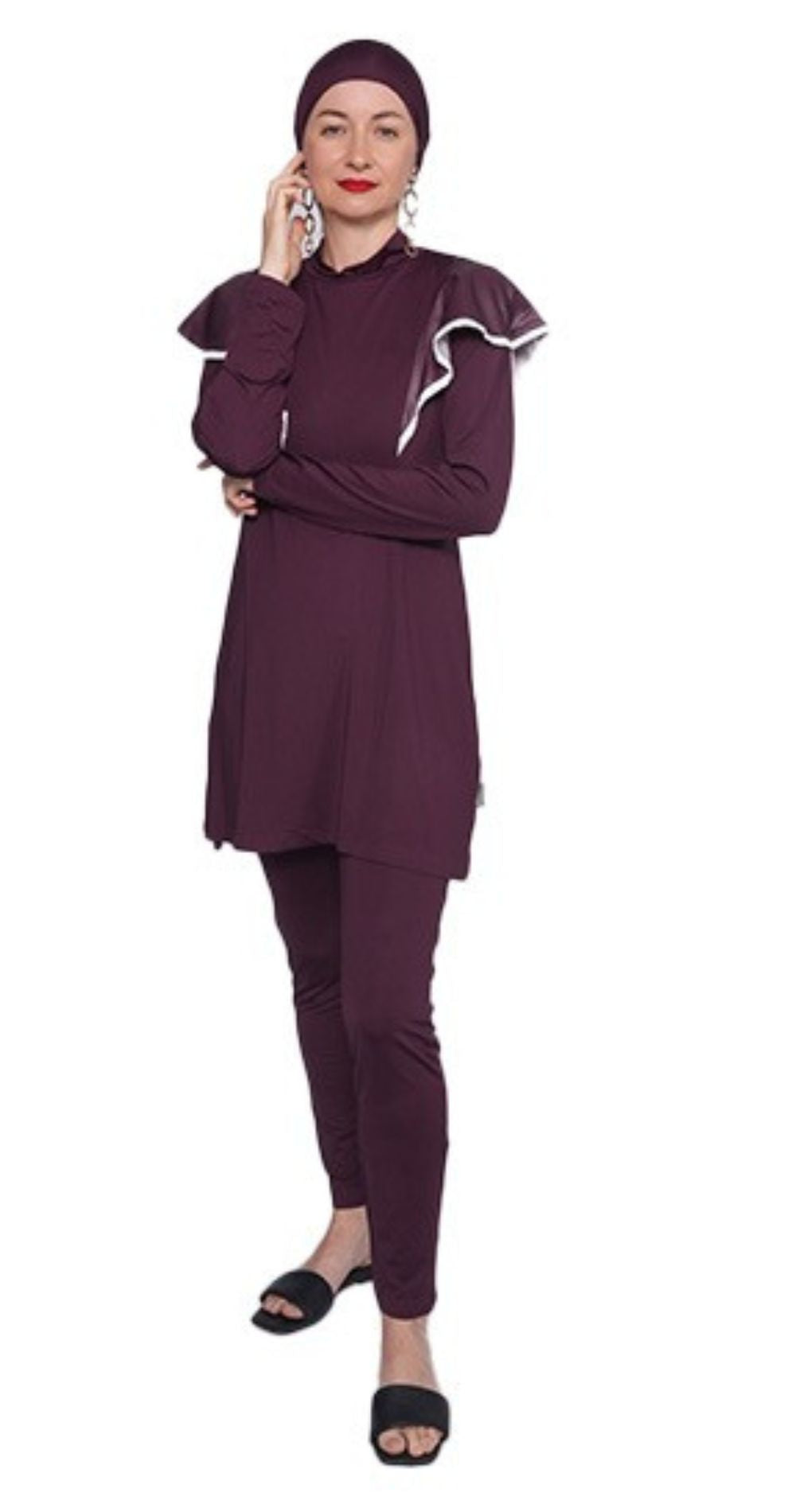 Plum Ruffle Modest Burkini Set (Satin Sleeves)