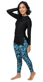 Their eye-catching tropical print adds a fresh, modern touch that stands out beautifully against the blue waters of Dubai and Abu Dhabi. Lightweight and breathable, these swim leggings provide sun protection and stay securely in place, giving you confidence and ease during any water or outdoor activity. Pair them with any swim top or rashguard to create your ideal modest or sporty swim look.