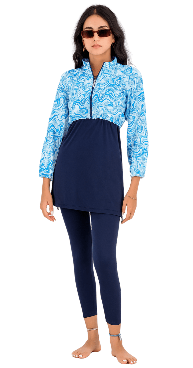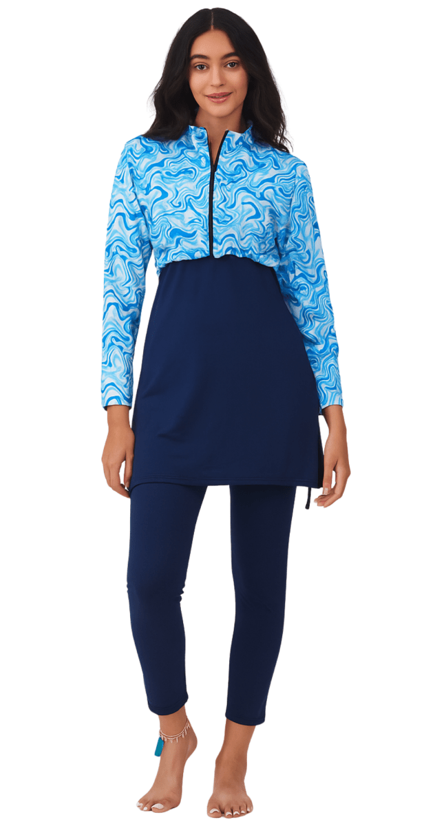 Blue Ocean Swirl Modest Burkini – Elegant Swimwear for Confident Coverage